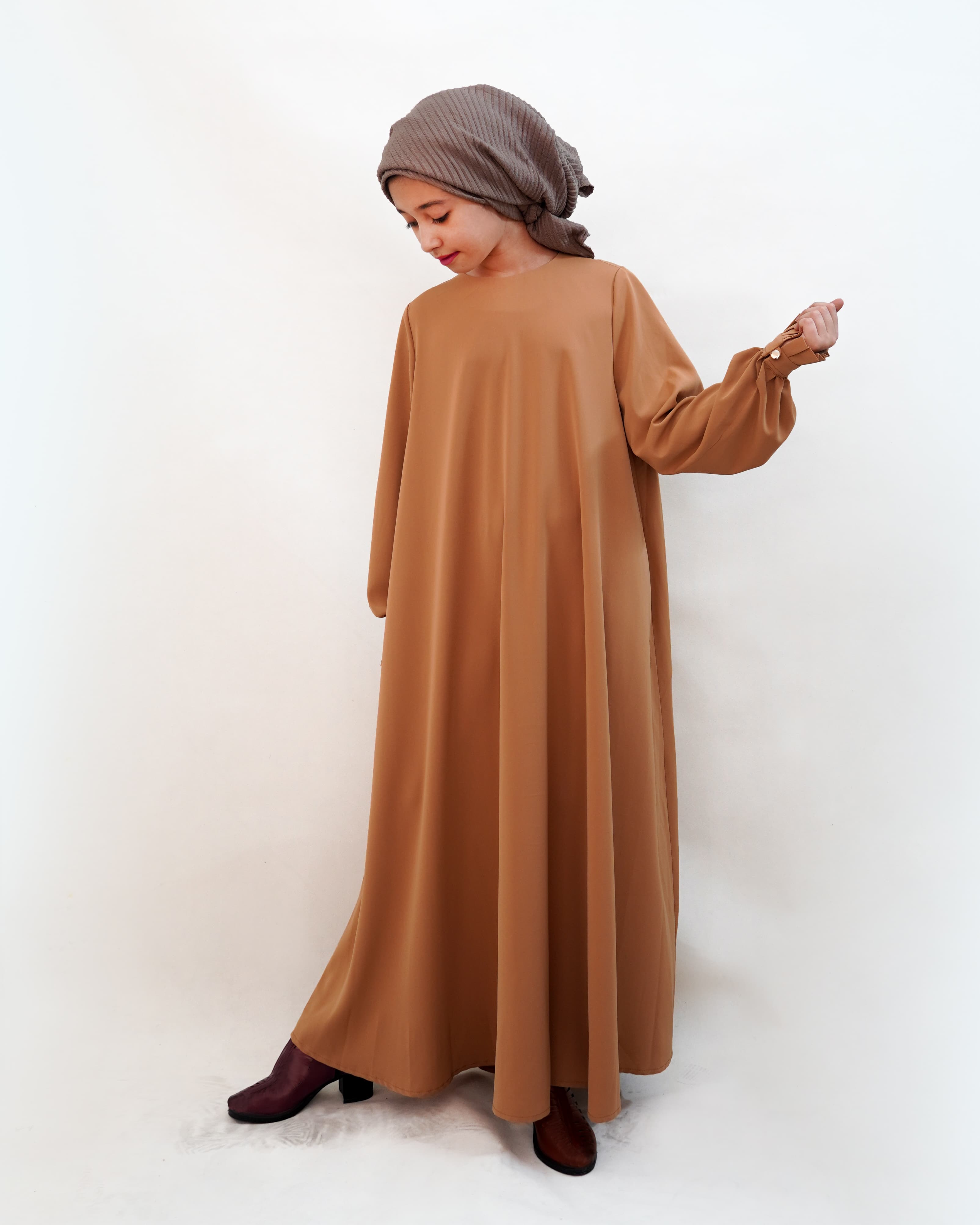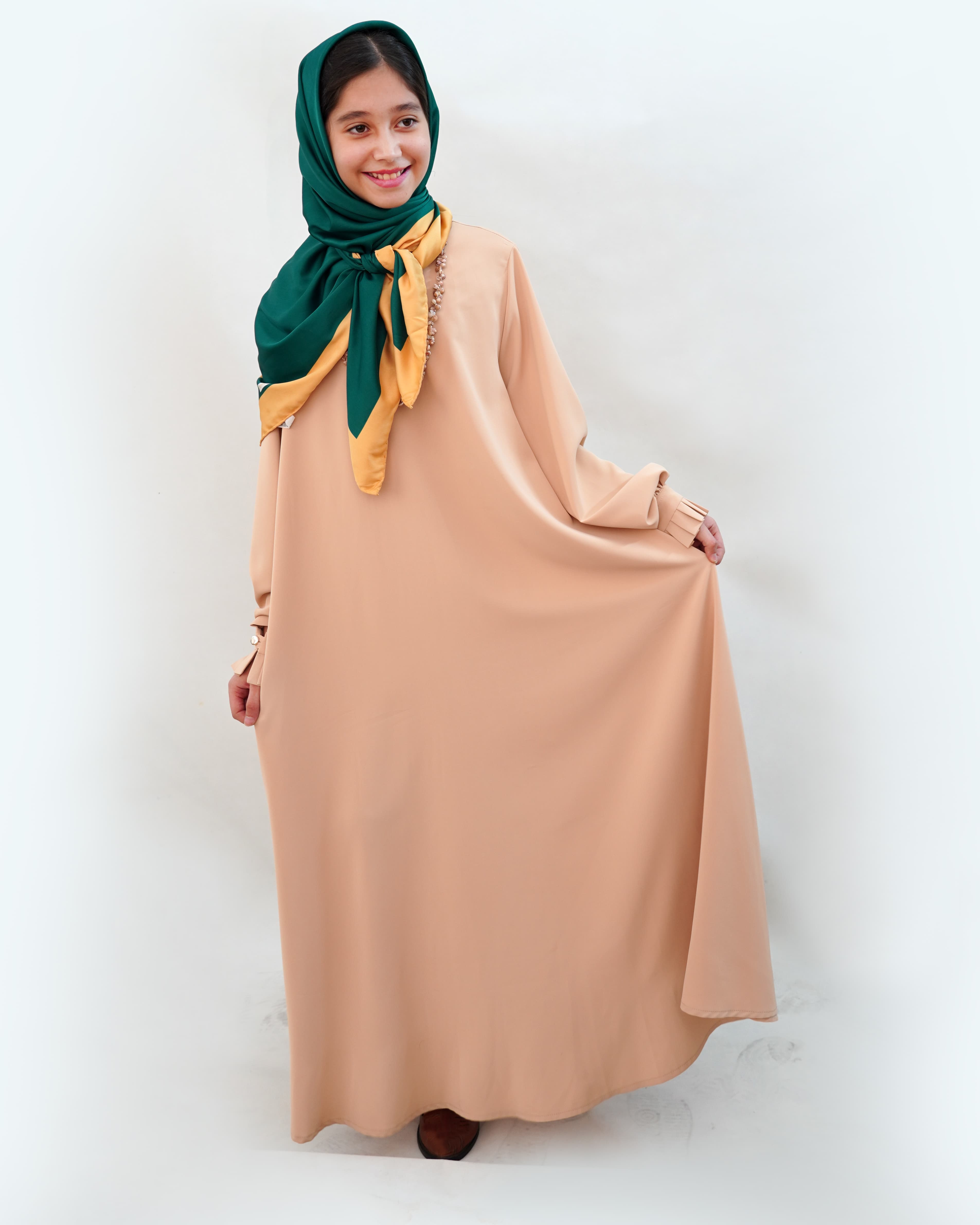 عبا بلند دخترانه آستین دار با تزیین پلیسه روی مچ و یقه ساده گرد، انتخابی اصیل و شیک برای بانوانی است که به دنبال وقار و راحتی در استایل خود هستند. جنس پارچه الیزه است و به این دلیل ریزش و ایستایی بسیار خوبی داشته و مناسب مجالس رسمی است. رنگ بندی متنوع دارد که شامل نارنجی، سرخابی، مشکی، طوسی، دورنگ کرم، سبز تیره ، قهوه ای سالمون و سرمه ای است. در 3 سایز 2-3-4 است. مناسب 8 سال تا 18 سال است. طراحی آزاد این عبا، پوششی راحت و در عین حال مرتب ایجاد میکند که هم برای استفاده روزمره و هم برای مجالس رسمی و مذهبی مناسب است. دوخت تمیز و جنس باکیفیت پارچه، ماندگاری و جلوهای خاص به این محصول بخشیده است. با انتخاب این عبا میتوانید استایلی متفاوت و در عین حال ساده و زیبا داشته باشید.
